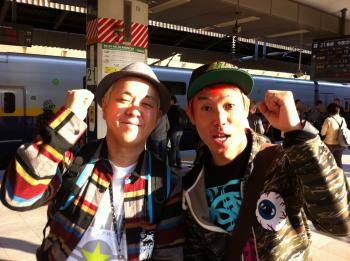 朝の光がまばゆい中の二人はたまたま偶然に東京駅で出くわした、ハイスタのナンちゃん。朝から元気いっぱいでしたよ。
