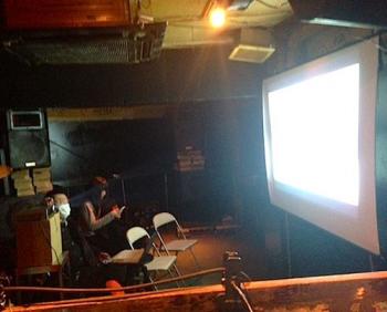 場内はこういう感じ。フロアーに椅子を並べて画面を見ます。