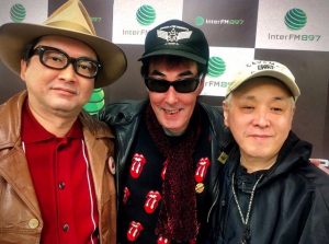 スタジオ前にて記念撮影。katchin’~鮎川誠サン~大貫憲章です(なんか眠そうですよね?)