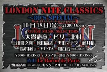Blogby 大貫憲章 2013/10/14 by 大貫憲章 「いよいよやるぞ!昔の80年代風ロンナイ!」 お待たせしましたが、いよいよ決まりました。それもいきなりの今週末、18日の金曜日、青山にあるオトナなミュージック・ラウンジ、Le Baron De Parisにて遂に開催です。かつて、ツバキハウス、P.ピカソ、第3倉庫…